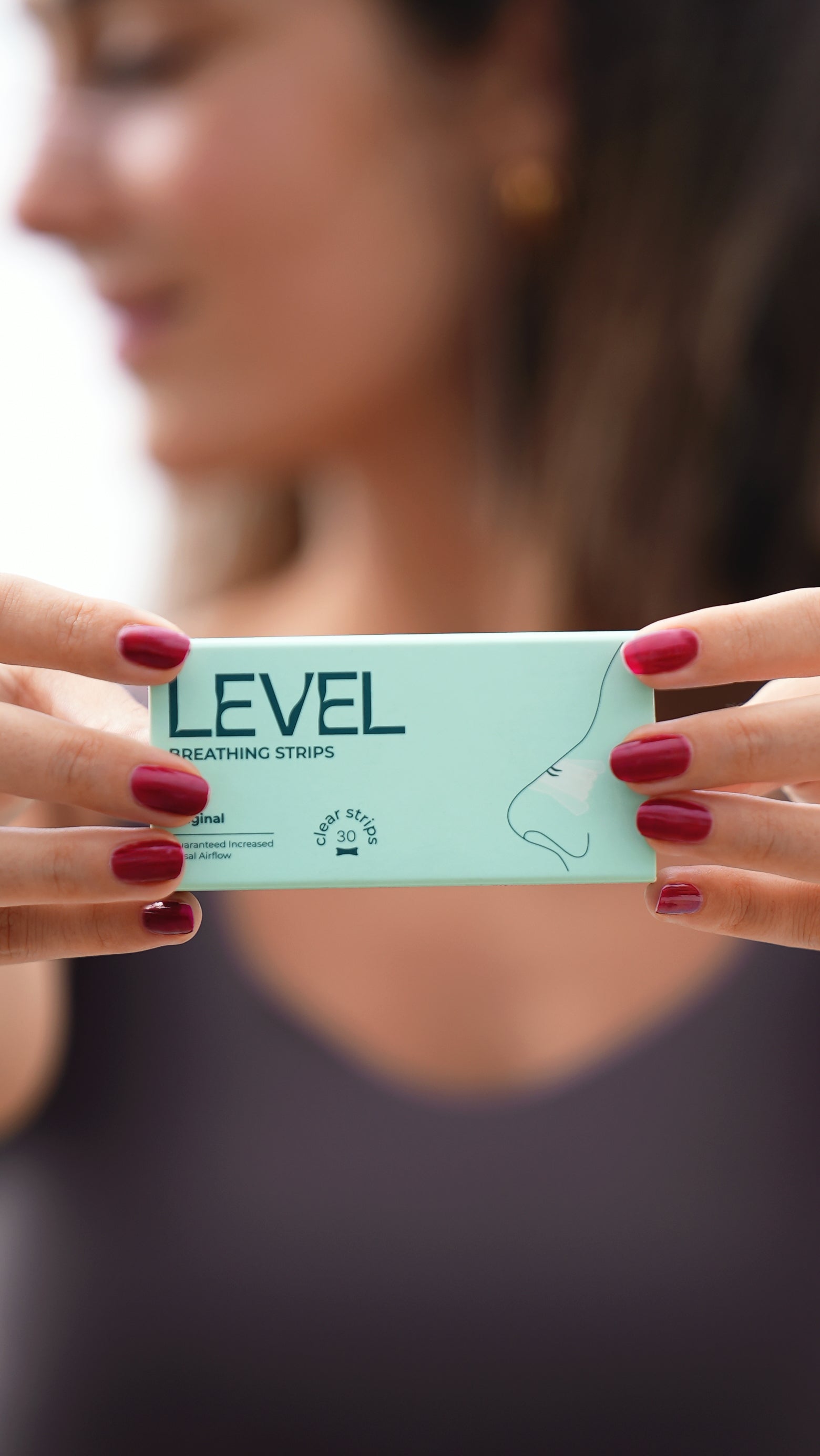 Level breathing strips are drug‑free nasal strips that instantly open your nose for nasal congestion relief guaranteeing increased nasal airflow. They are proven to significantly improve sleep, performance, and overall health.